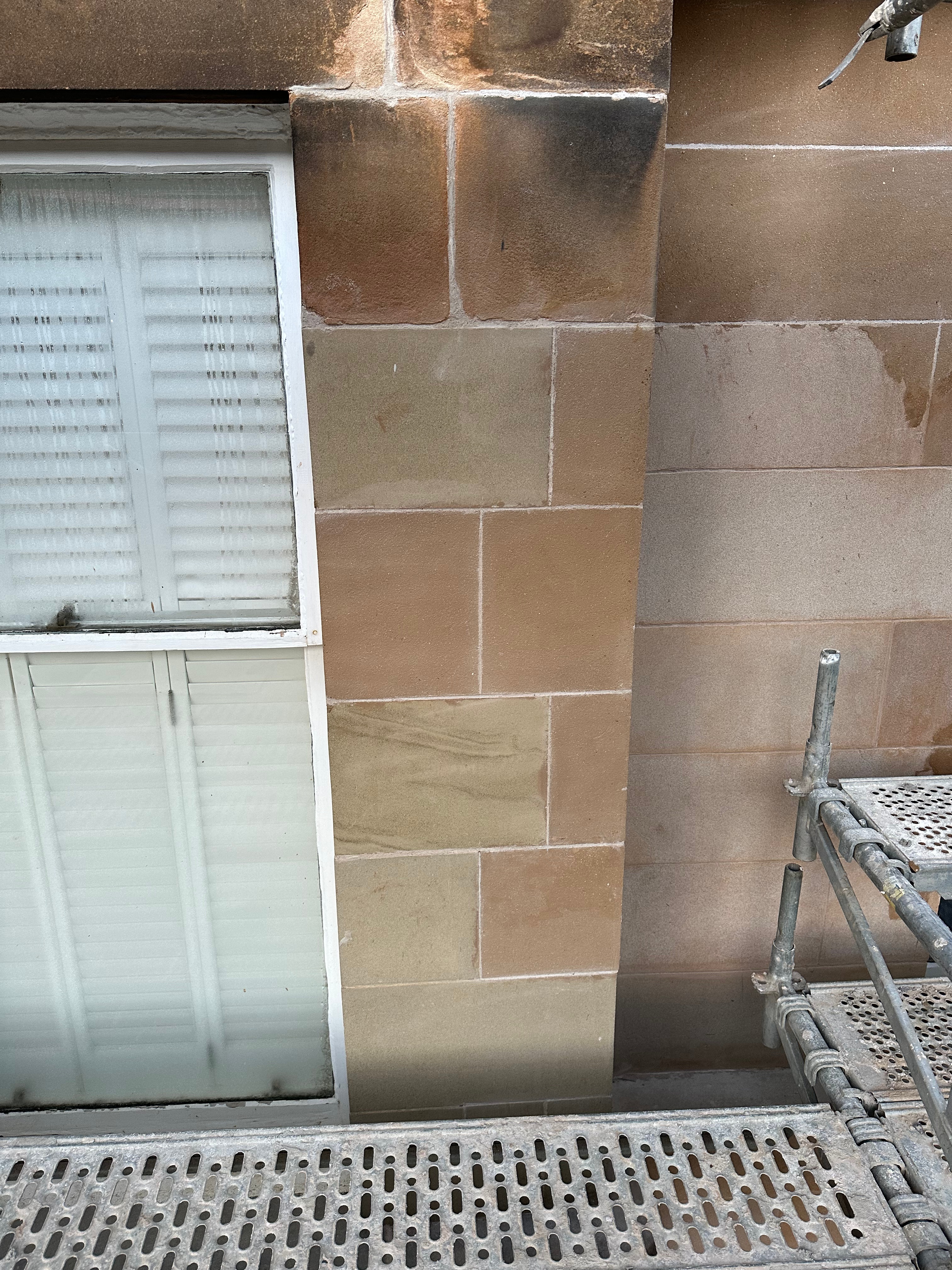 There are a number of ways to clean stonework. Externally being a lot easier than internally as you have the ability to use washers, polishers and chemicals a lot more freely than internally. A hot pressure washer/steam cleaner works best for cleaning stone and brickwork. Chemicals like a biocide or masonry acid can be used (with caution) and with mixed results. In our experience when it comes to cleaning or stripping its the heat that really counts. Softer stonework like sandstone can be damaged by high pressure hoses so always be careful and test an area before trying. Polishing/buffing with a grinder should always be a last resort and make sure to wear the correct PPE.