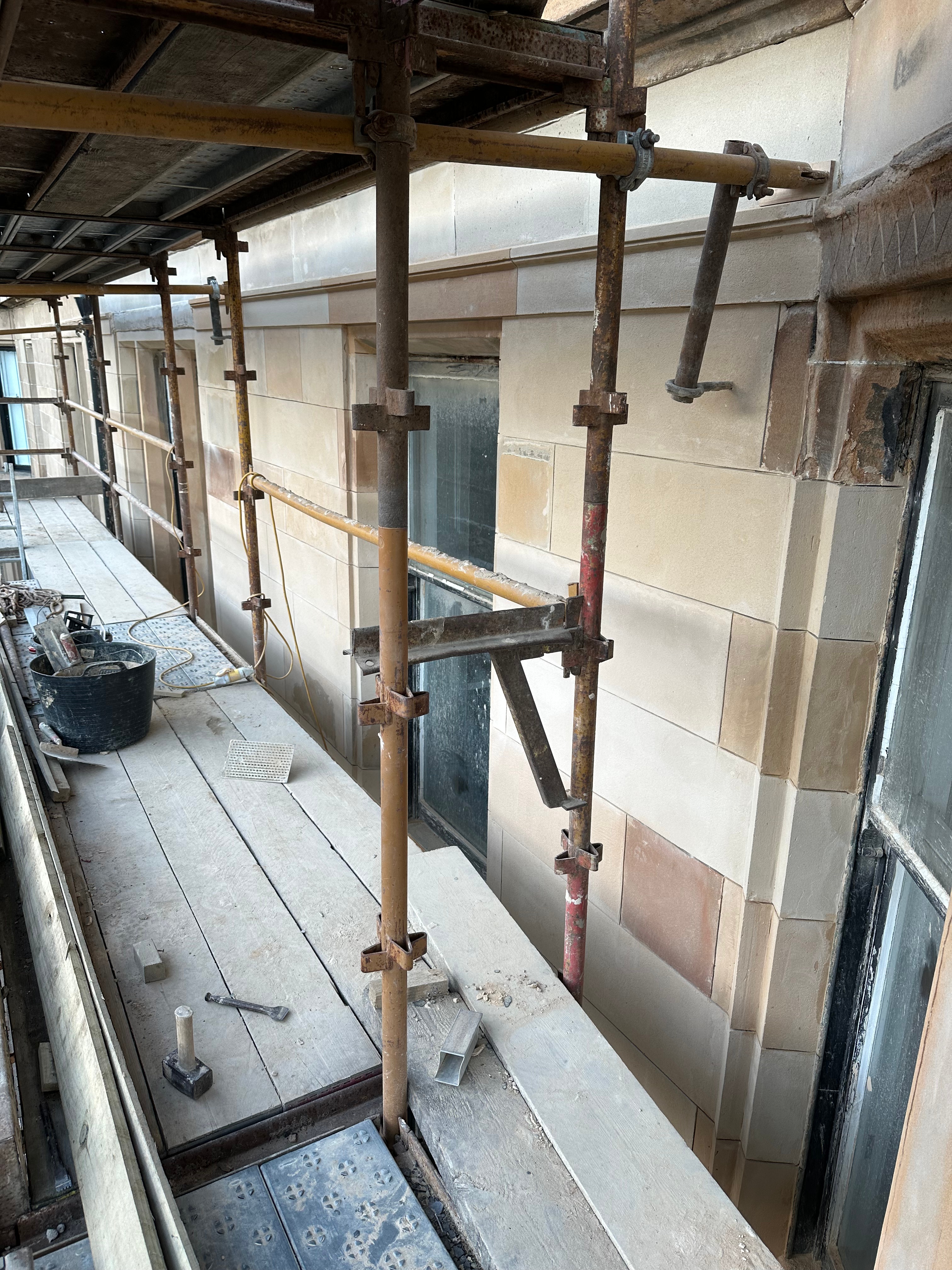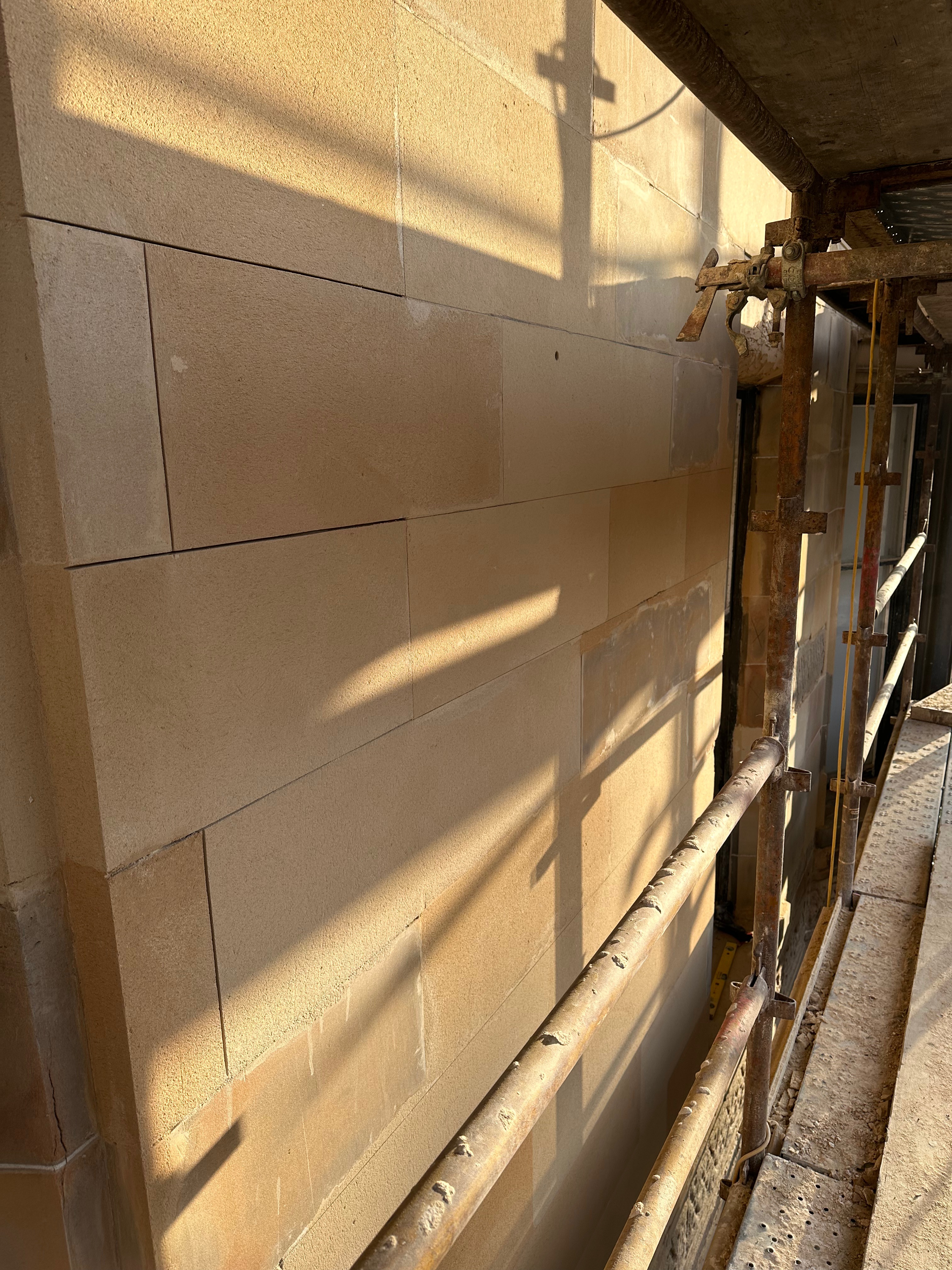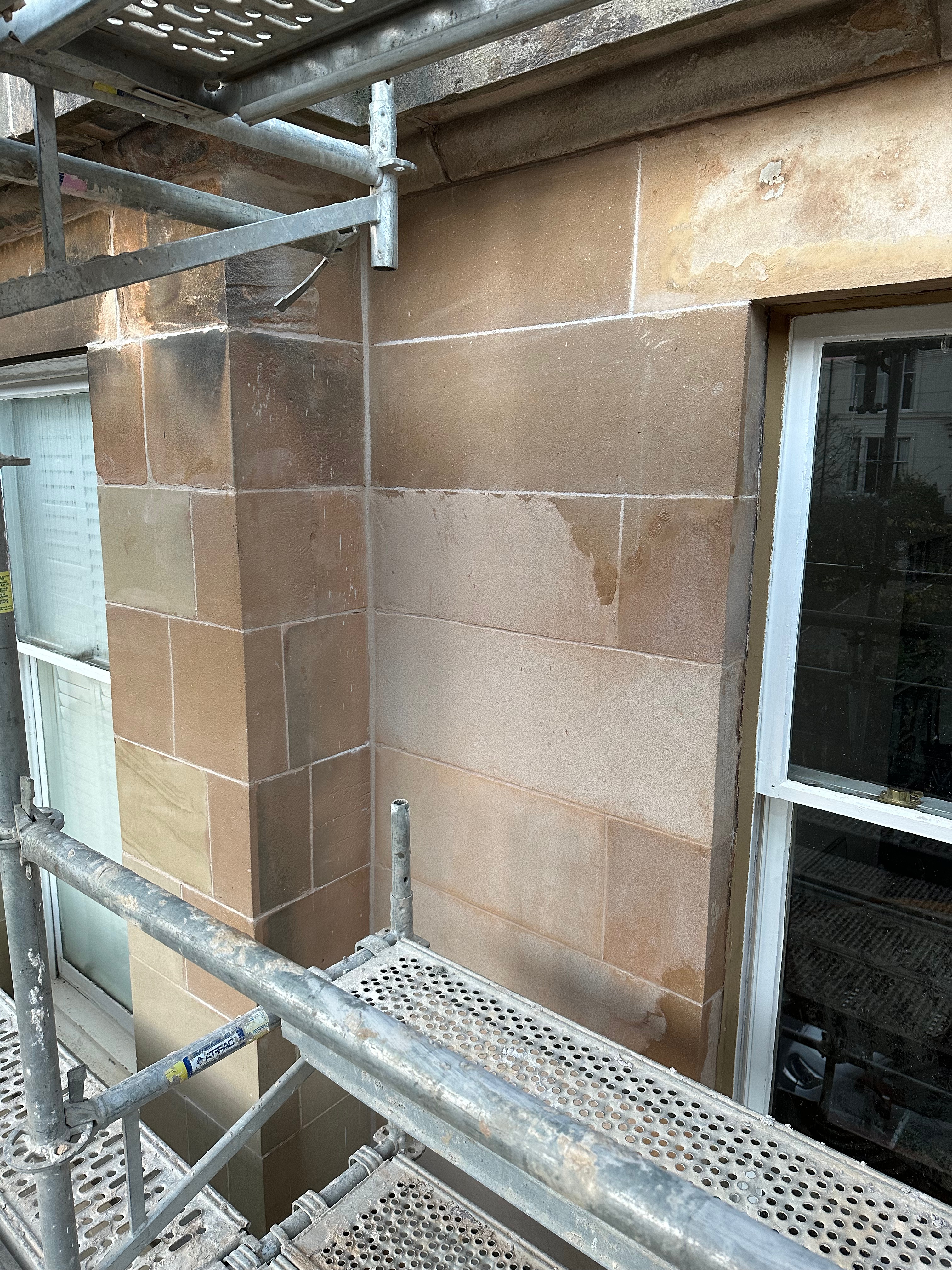 Sometimes a stone will need a full replacement i.e its cracked beyond repair or eroded to to point where its basically sand. Indenting is the most common way to replace a stone or brick block when required, to do this you will need to cut out the stone to a depth of at least 100mm (further if needed) and then rebuild it with a block sized and cut to measure bedded and jointed with a suitable lime mortar. Always make sure to support stonework above where necessary when removing existing stone.